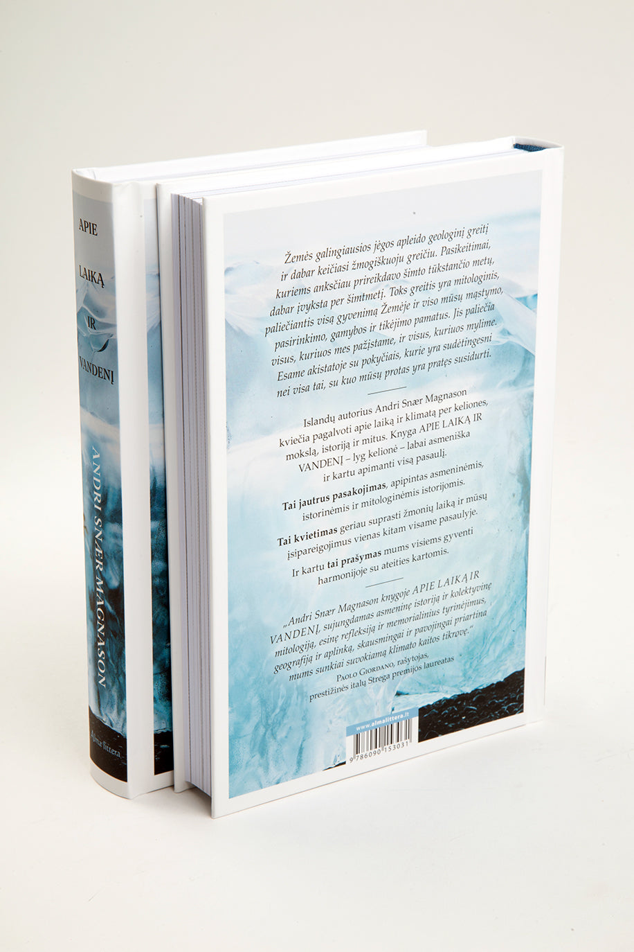 „Andri Snær Magnason knygoje „Apie laiką ir vandenį“, sujungdamas asmeninę istoriją ir kolektyvinę mitologiją, esinę refleksiją ir memorialinius tyrinėjimus, geografiją ir aplinką, skausmingai ir pavojingai priartina mums sunkiai suvokiamą klimato kaitos tikrovę.“ – Paolo Giordano, rašytojas, prestižinės italų Strega premijos laureatas