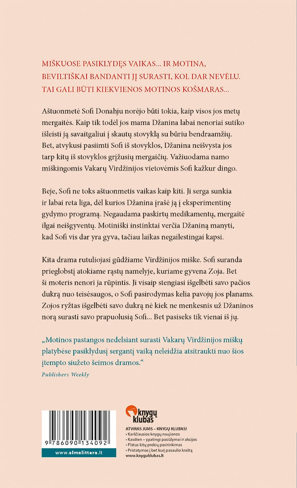 Aštuonmetė Sofi Donahju norėjo būti tokia, kaip visos jos metų mergaitės. Kaip tik todėl jos mama Džanina labai nenoriai sutiko išleisti ją savaitgaliui į skautų stovyklą su būriu bendraamžių. Bet, atvykusi pasiimti Sofi iš stovyklos, Džanina neišvysta jos tarp kitų iš stovyklos grįžusių mergaičių. Važiuodama namo miškingomis Vakarų Virdžinijos vietovėmis Sofi kažkur dingo.