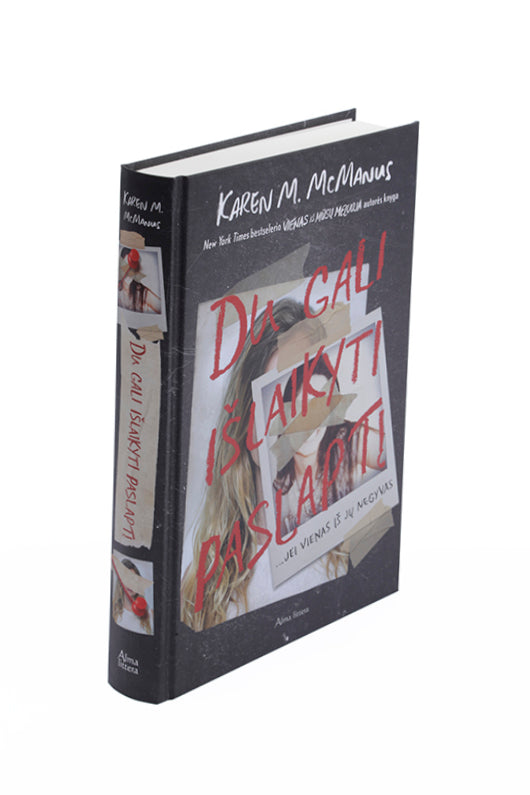 Karen M. McManus – pasaulio jaunimo dėmesį prikausčiusio bestselerio „Vienas iš mūsų meluoja“ autorė. Antra autorės knyga „Du gali išlaikyti paslaptį... jei vienas iš jų negyvas“ akimirksniu pavergė skaitytojus, pelnė krūvą apdovanojimų ir jau yra išversta į daugiau nei 30 kalbų!