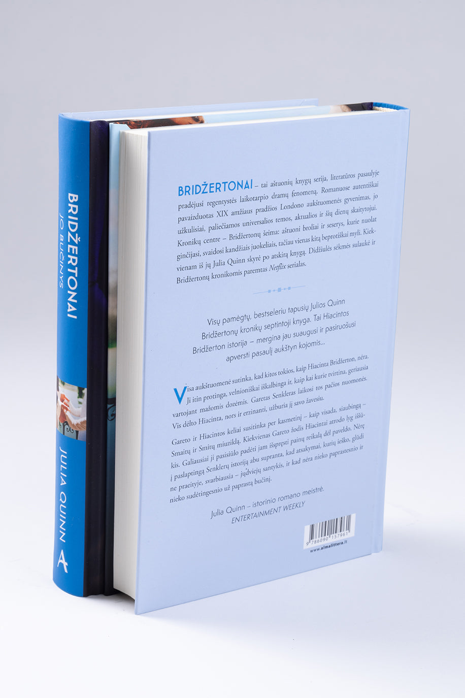BRIDŽERTONAI – tai aštuonių knygų serija, literatūros pasaulyje pradėjusi regentystės laikotarpio dramų fenomeną. Romanuose autentiškai pavaizduotas XIX amžiaus pradžios Londono aukštuomenės gyvenimas, jo užkulisiai, paliečiamos universalios temos, aktualios ir šių dienų skaitytojui. Kronikų centre – Bridžertonų šeima: aštuoni broliai ir seserys, kurie nuolat ginčijasi, svaidosi kandžiais juokeliais, tačiau vienas kitą beprotiškai myli. Kiekvienam iš jų Julia Quinn skyrė po atskirą knygą. Didžiulės sėkmės sulaukė ir Bridžertonų kronikomis paremtas Netflix serialas.