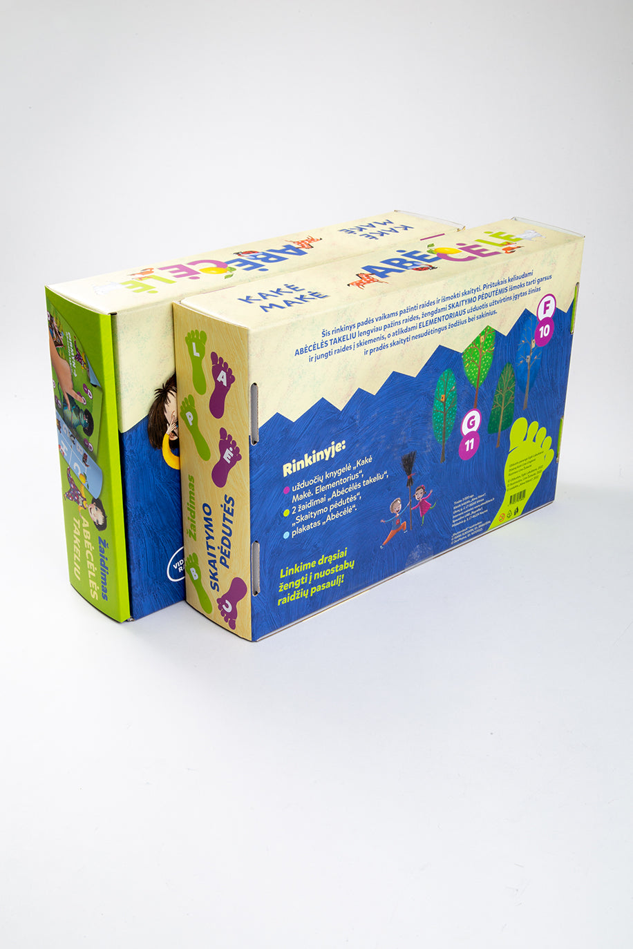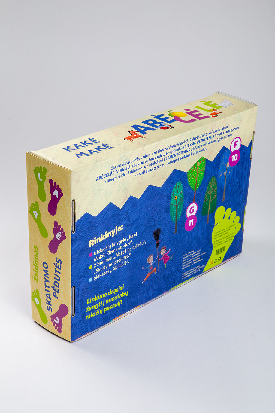 Šis rinkinys padės vaikams pažinti raides ir išmokti skaityti. Pirštukais keliaudami ABĖCĖLĖS TAKELIU lengviau pažins raides, žengdami SKAITYMO PĖDUTĖMIS išmoks tarti garsus ir jungti raides į skiemenis, o atlikdami ELEMENTORIAUS užduotis užtvirtins įgytas žinias ir pradės skaityti nesudėtingus žodžius bei sakinius.