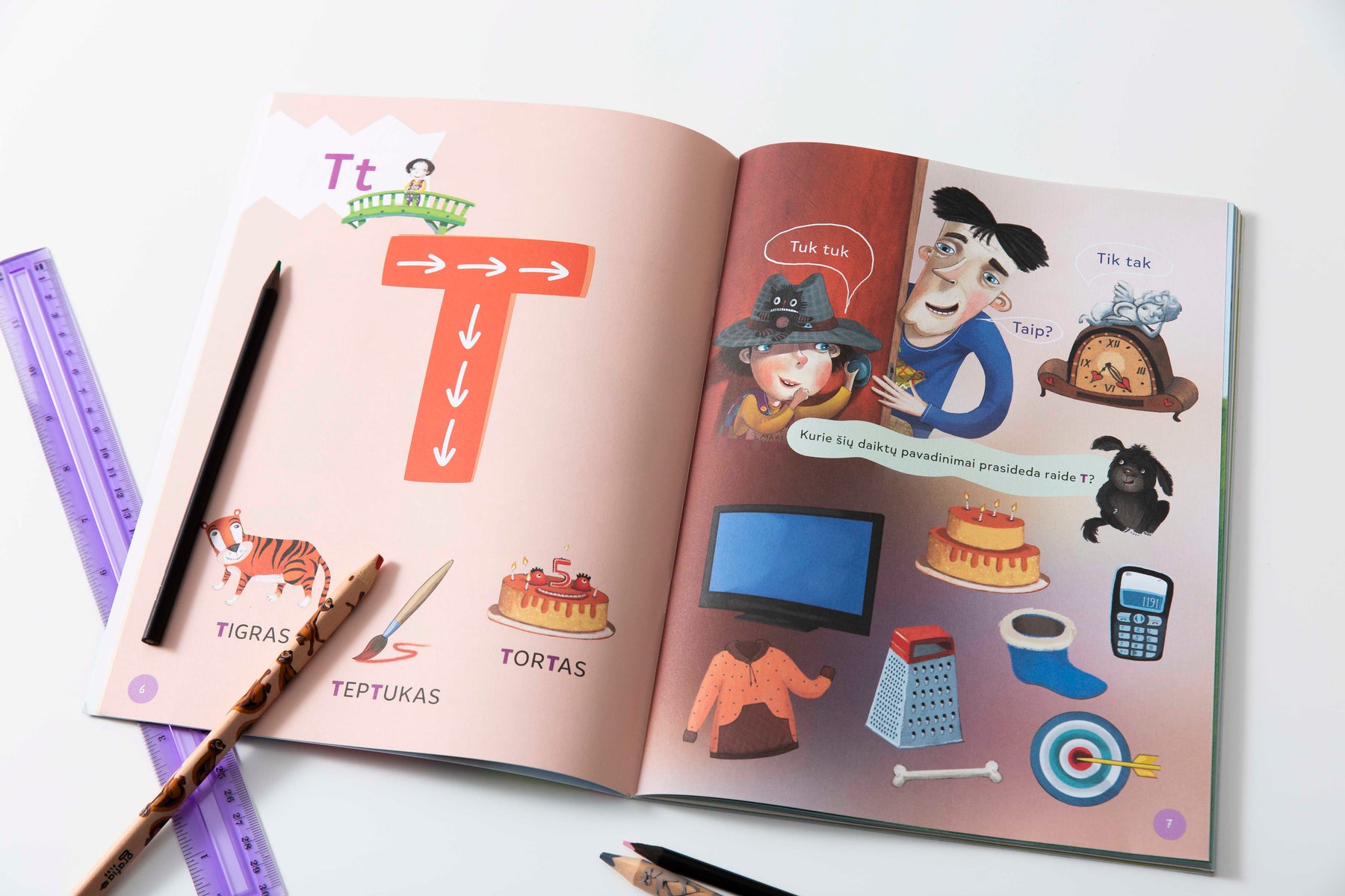 raidžių susideda nupieštų daiktų ir gyvūnų pavadinimai,
