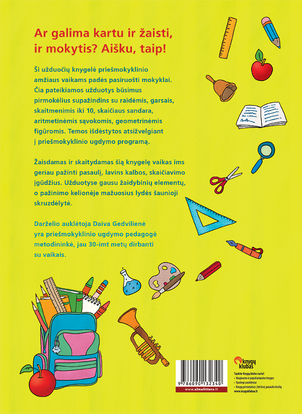 Ši užduočių knygelė priešmokyklinio amžiaus vaikams padės pasiruošti mokyklai. Čia pateikiamos užduotys būsimus pirmokėlius supažindins su raidėmis, garsais, skaitmenimis iki 10, skaičiaus sandara, aritmetinėmis sąvokomis, geometrinėmis figūromis. Temos išdėstytos atsižvelgiant į priešmokyklinio ugdymo programą.