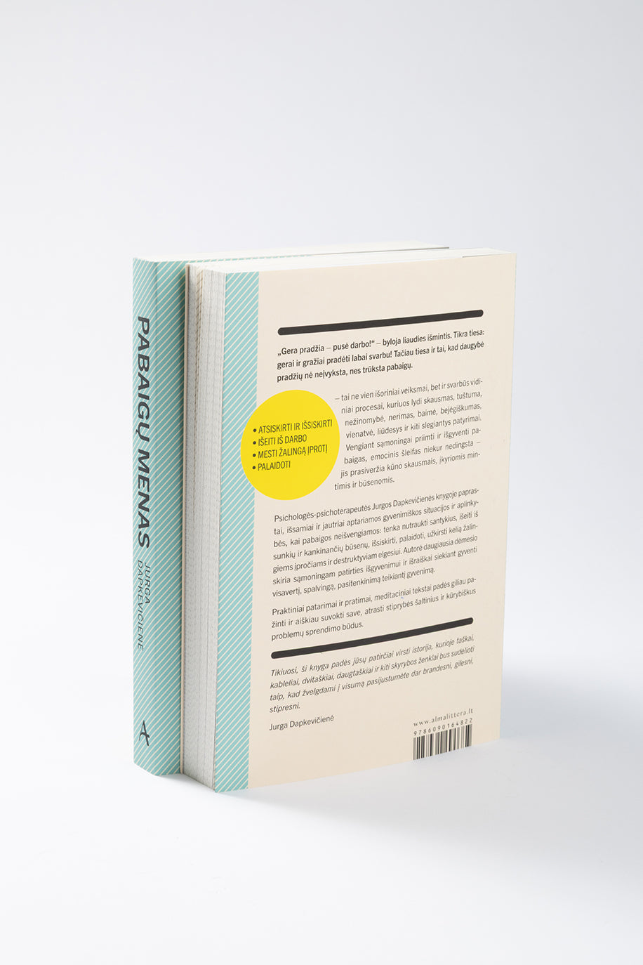 Psichologės-psichoterapeutės J. Dapkevičienės knygoje paprastai, išsamiai ir jautriai aptariamos gyvenimiškos situacijos ir aplinkybės, kai pabaigos neišvengiamos: tenka nutraukti santykius, išeiti iš sunkių ir kankinančių būsenų, išsiskirti, palaidoti, užkirsti kelią žalingiems įpročiams ir destruktyviam elgesiui. Autorė daugiausia dėmesio skiria sąmoningam patirties išgyvenimui ir išraiškai siekiant gyventi visavertį, spalvingą, pasitenkinimą teikiantį gyvenimą.