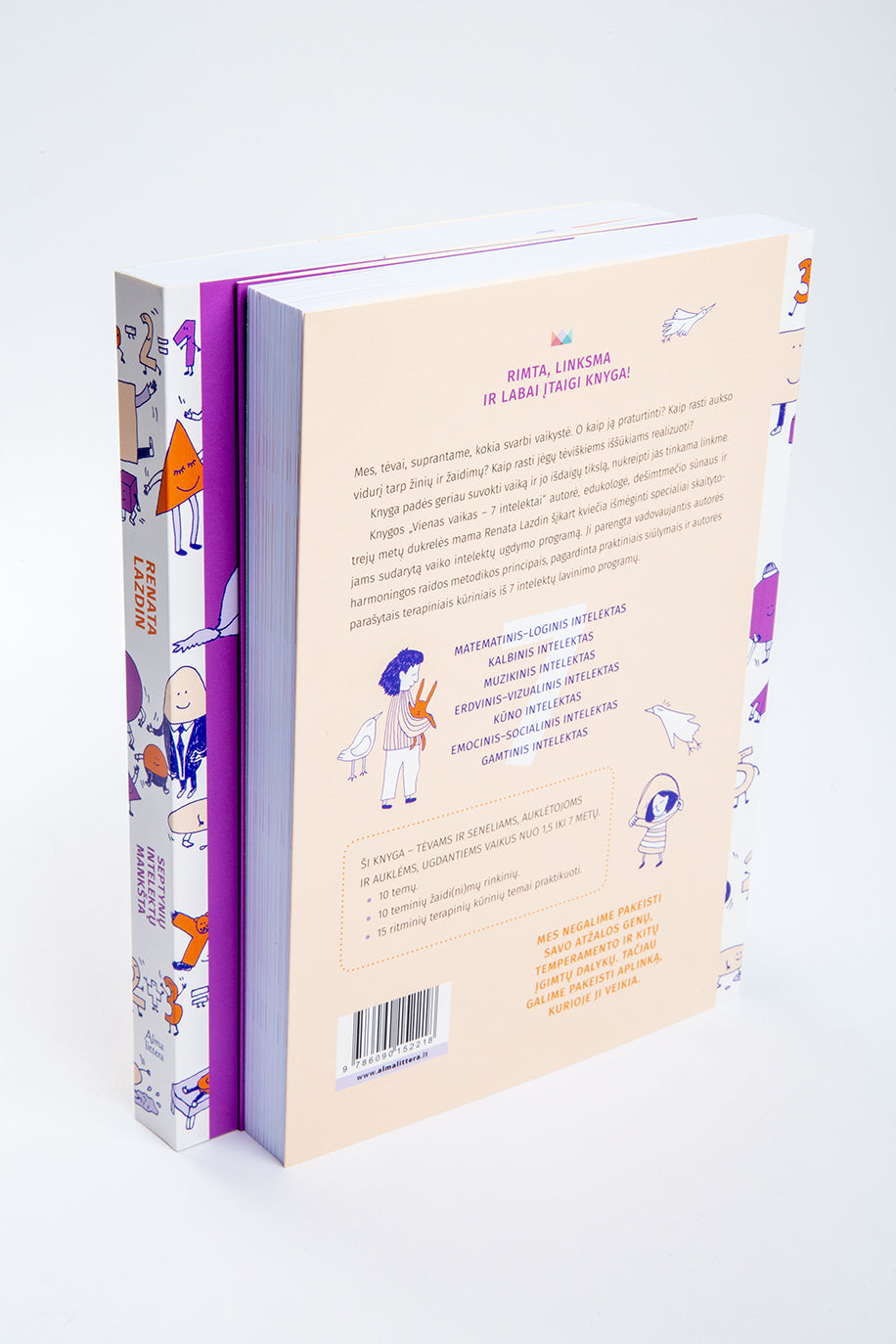 Knygos „Vienas vaikas – 7 intelektai“ autorė, edukologė, dešimtmečio sūnaus ir trejų metų dukrelės mama Renata Lazdin šįkart kviečia išmėginti specialiai skaitytojams sudarytą vaiko intelektų ugdymo programą. Ji parengta vadovaujantis autorės harmoningos raidos metodikos principais, pagardinta praktiniais siūlymais ir autorės parašytais terapiniais kūriniais iš 7 intelektų lavinimo programų.