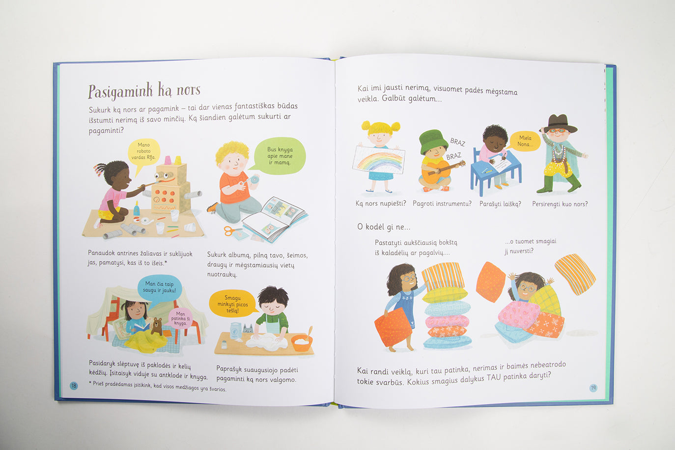• siūlomos įvairios veiklos ir pratimai, kaip susidoroti su nerimu ir baimėmis;